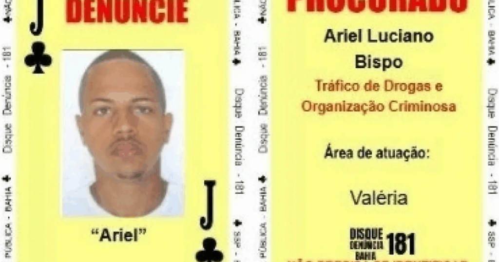 O homem descrito como “Valete de Paus” do Baralho do Crime, da Secretaria da Segurança Pública (SSP-BA), foi preso durante operação da Polícia Civil. A informação foi divulgada nesta sexta-feira (11). Ariel Luciano Bispo estava foragido e se escondia em uma casa no bairro Vila Praiana, em Lauro de Freitas, na Região Metropolitana de Salvador (RMS).