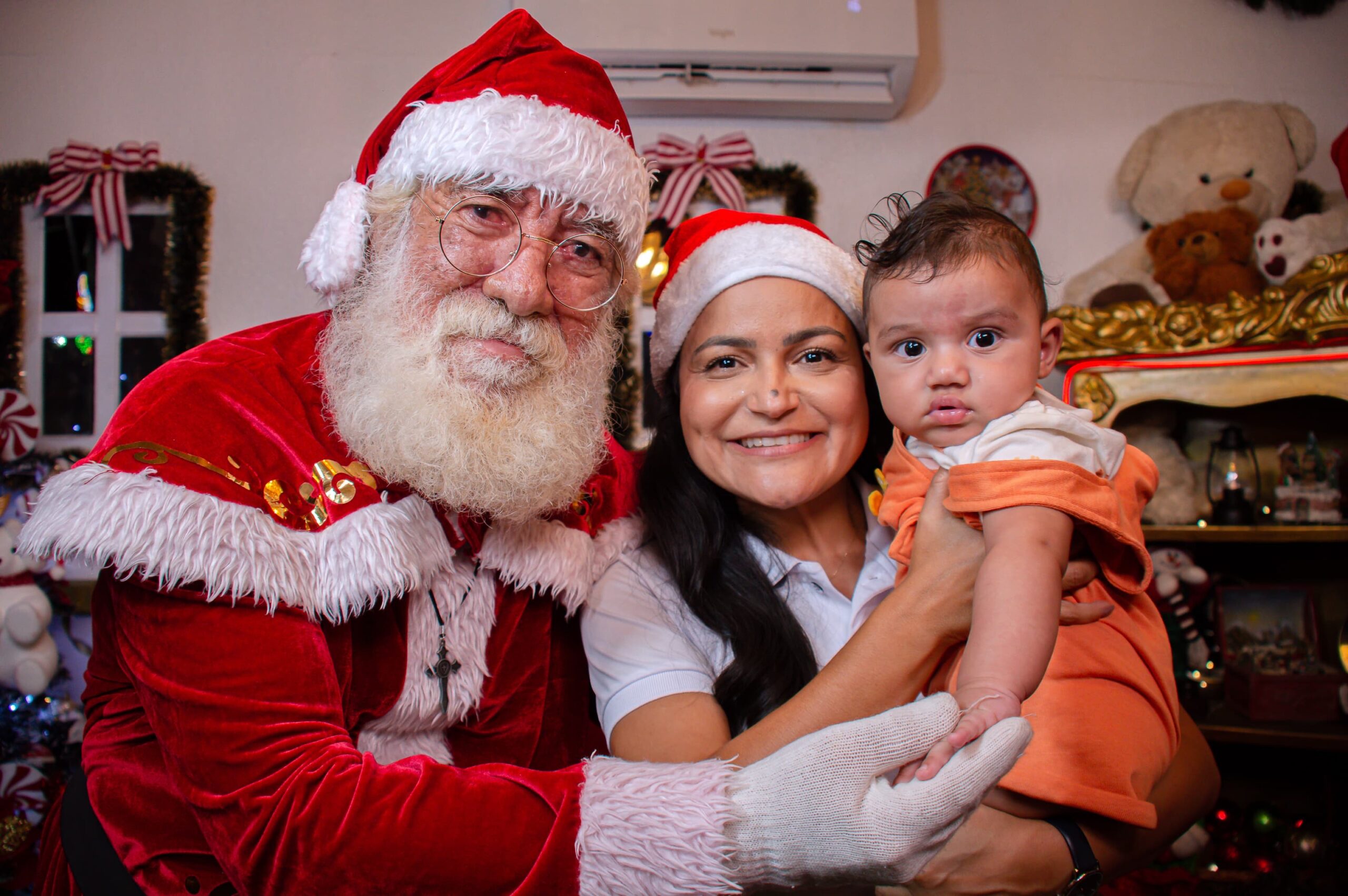 O ponto alto do itinerário foi a Praça João Thiago dos Santos, a popular Praça da Matriz, já decorada para a época. Lá, a caravana se encontrou e interagiu com a comunidade, reforçando os laços de pertencimento e o verdadeiro sentido da data: a união. Para completar a experiência mágica, a equipe distribuiu pipoca e algodão-doce gratuitamente para a criançada, garantindo delícias açucaradas.