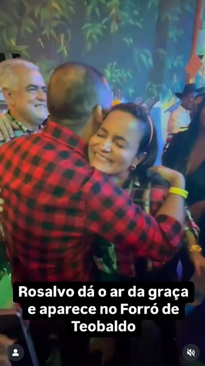 Imagens que circulam nas redes sociais mostram que Débora cumprimentou Rosalvo e bateu um papo rápido com ele. O encontro aconteceu em um forró promovido pelo empresário Teobaldo Costa, o Forró do União.