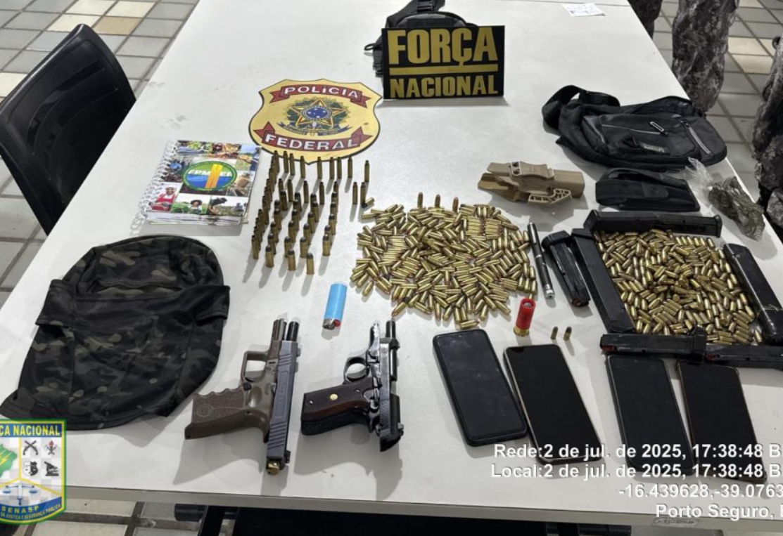 A Força Nacional de Segurança Pública apreendeu armamentos e munições com quatro indivíduos indígenas na manhã desta quarta-feira (2), durante operação de patrulhamento no Território Indígena de Barra Velha, no extremo sul da Bahia. A ação ocorre no contexto da atuação das forças federais nas terras dos povos Pataxó e Pataxó Hã Hã Hãe, em apoio à Fundação Nacional dos Povos Indígenas (Funai).