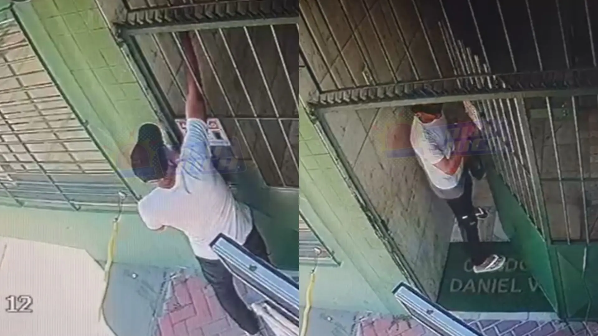 No vídeo, é possível ver o momento em que o suspeito chega ao portão da faculdade, se passando por aluno, solicita acesso e consegue entrar na unidade. Pouco tempo depois, ele sai do local com uma sacola preta nas mãos.
