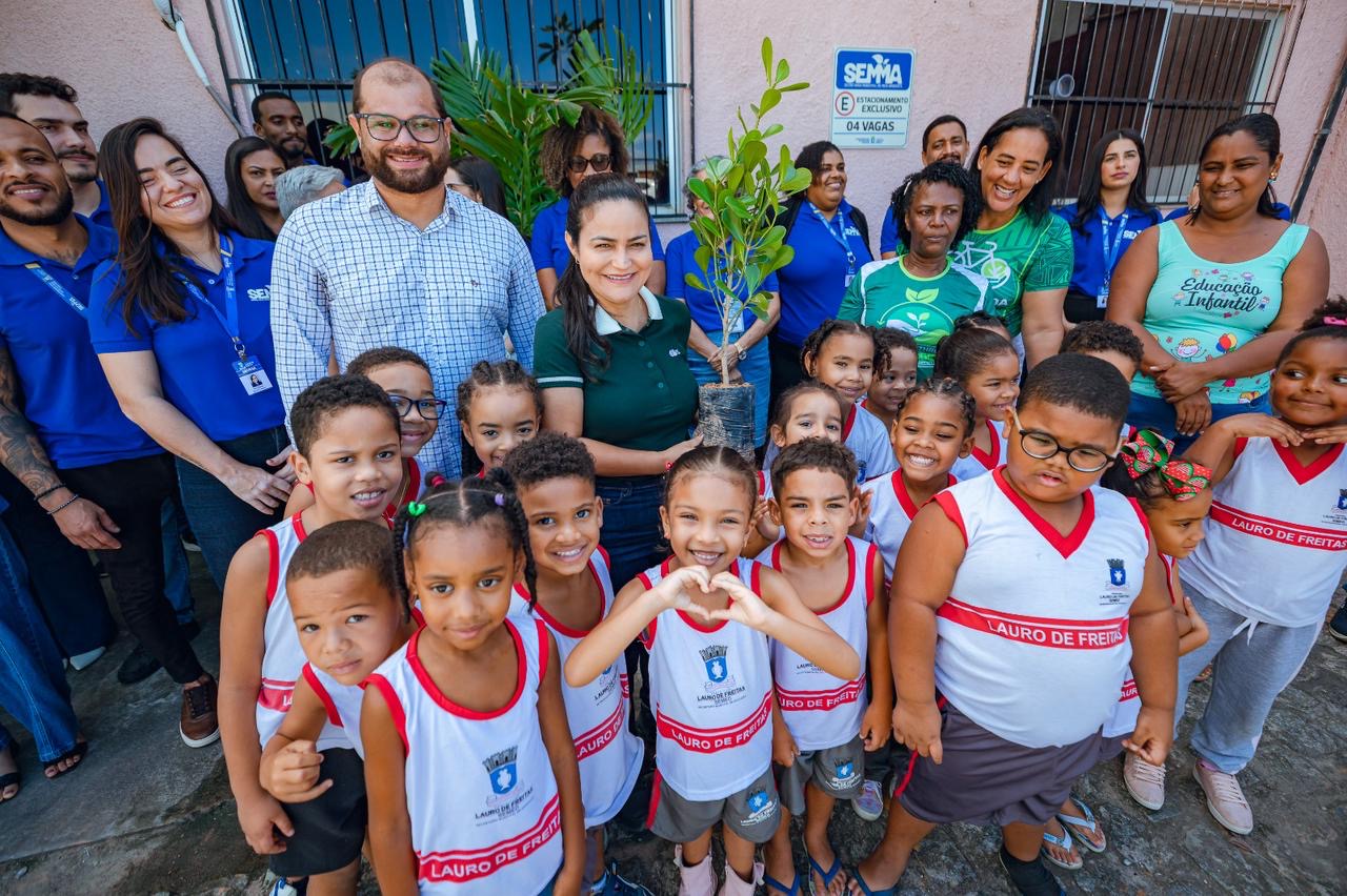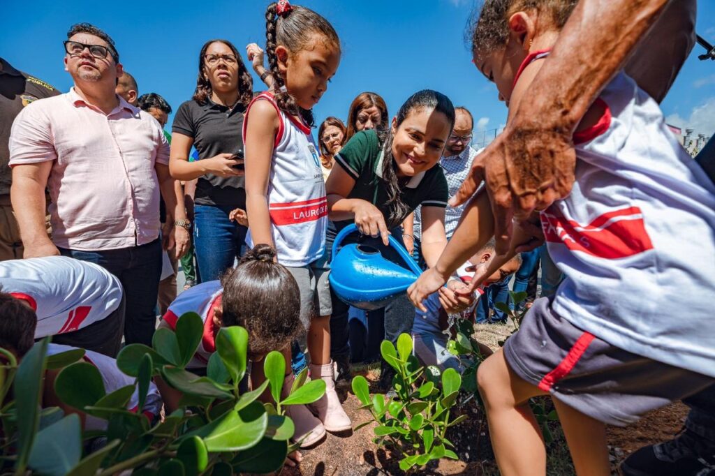 A prefeita Débora Regis participou, nesta quarta-feira (10/9), do lançamento do Plano Municipal de Arborização Urbana. A iniciativa, realizada pela Prefeitura de Lauro de Freitas, por meio da Secretaria de Meio Ambiente (SEMMA), tem como objetivo ampliar as áreas verdes da cidade, melhorar a qualidade do ar, reduzir a poluição sonora e promover mais bem-estar à população. Durante a ação, a gestora da cidade se uniu a estudantes da Escola Municipal Vila Nova de Portão no plantio coletivo de árvores nativas da Mata Atlântica, dando início à formação de um corredor verde na Avenida Brigadeiro Alberto C. Matos, localizada no bairro Jardim do Jockey.