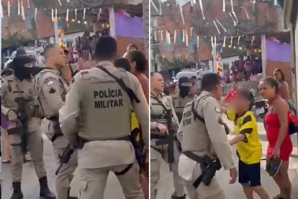 Um policial militar foi flagrado dando um tapa no rosto de uma mulher durante uma festa infantil no Dia das Crianças, no domingo (12), na Rua Baixa da Fonte, nas imediações do final de linha de Pirajá Velha, em Salvador. Um vídeo que circula pelas redes sociais mostra quando a vítima arremessa uma lata em direção aos policiais militares e, em seguida, um deles se aproxima dela.