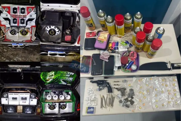 Além das drogas e da arma, quatro equipamentos de som do tipo paredão foram recolhidos, junto com dinheiro em espécie.