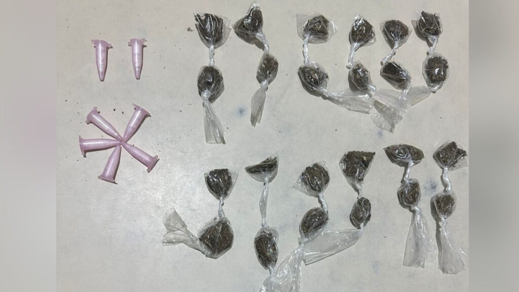 Após abordagem e varredura no terreno, foram encontradas 24 porções de maconha e sete pinos de cocaína. O suspeito e todo o material apreendido foram encaminhados à delegacia da região.