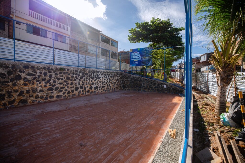 O trabalho de reconstrução do município não para. Com isso, equipes da Prefeitura de Lauro de Freitas, por meio da Secretaria Municipal de Infraestrutura e Serviços Públicos, dão andamento à obra de requalificação da Praça Santa Bárbara, localizada no bairro de Itinga, realizando serviços na área do campo e no entorno do local.