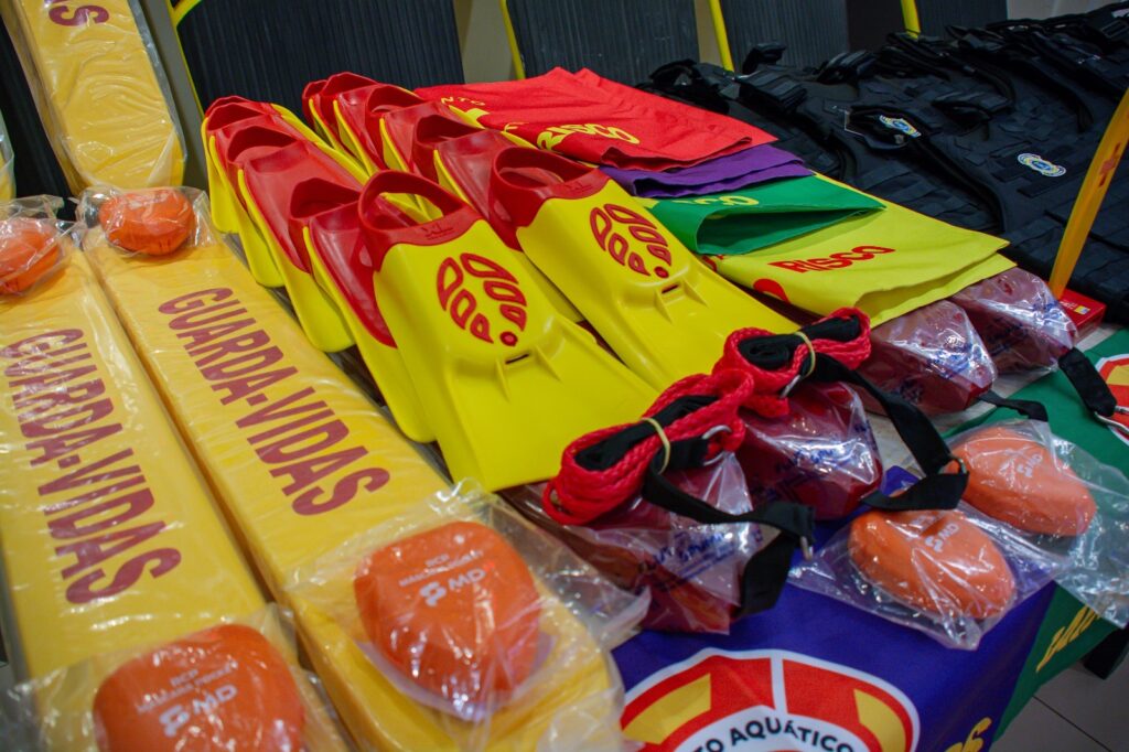 Ao todo, foram entregues 40 bandeiras sinalizadoras, 10 pranchas de resgate, 50 nadadeiras, 50 máscaras pocket para primeiros socorros e 10 rescue cans (boias de salvamento), para os 48 profissionais salva-vidas que atuam nas praias. Para a Guarda Municipal, foram disponibilizados 120 coletes balísticos nível 3A.