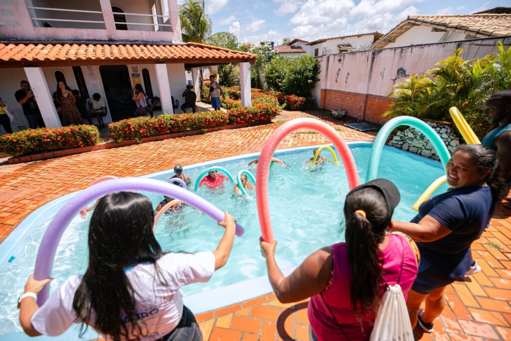 Na USF do Chafariz, a animação ficou por conta da turma da terceira idade. Maria Cristina dos Anjos Silva, de 66 anos, não escondeu a felicidade em participar da ginástica na piscina. “Essas ações não podem acabar nunca! Eu e minhas amigas ficamos em uma alegria só”, disse sorrindo.