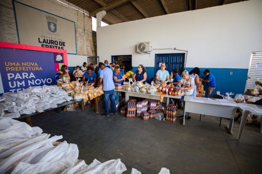 Cada cesta é composta por itens tradicionais do período, incluindo açúcar cristal, amendoim descascado, arroz parboilizado tipo 1, azeite de dendê, farinha de mandioca torrada, feijão fradinho branco, feijão carioca tipo 1, leite de coco, óleo de soja, sal iodado, suco de uva 100% natural, caixa de bombons sortidos e peixe tipo corvina, garantindo alimentos que contribuem para uma mesa mais farta durante a Semana Santa.
