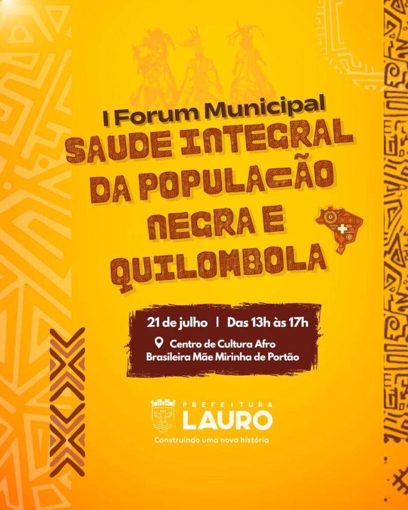 A Prefeitura de Lauro de Freitas, por meio da Secretaria Municipal de Saúde (SESA), vai promover na próxima segunda-feira (21/7), o primeiro Fórum Municipal de Saúde Integral da População Negra e Quilombola. O evento vai acontecer das 13h às 17h, no Centro de Cultura Afro-Brasileira Mãe Mirinha, em Portão.