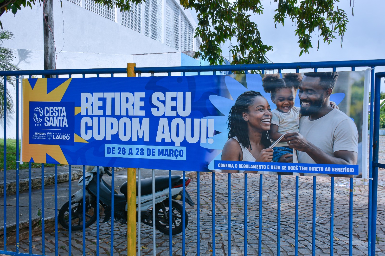 A Prefeitura de Lauro de Freitas iniciou, nesta quinta-feira (26/3), a entrega dos cupons que dão direito à Cesta Santa 2026. A ação, coordenada pela Secretaria Municipal de Desenvolvimento Social e Cidadania (SEMDESC), teve início com fluxo tranquilo nos pontos de distribuição e atendimento organizado, garantindo agilidade aos beneficiários.