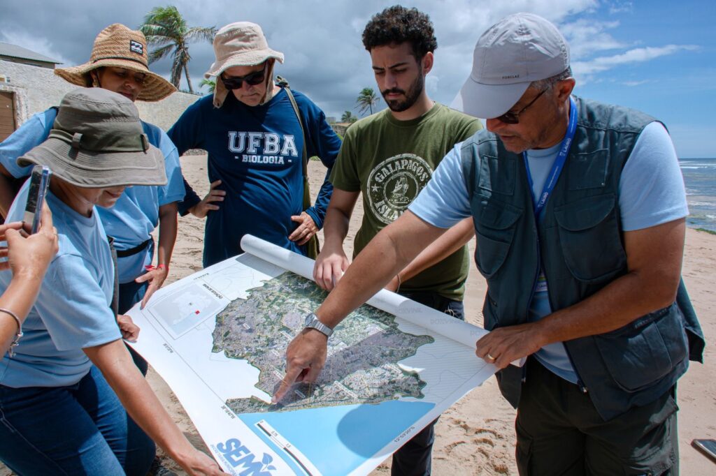 O professor titular do Instituto de Biologia da UFBA, Miguel Accioly, destacou a reciprocidade da cooperação. “Para nós, é uma oportunidade de oferecer um laboratório vivo de enorme riqueza natural para nossos alunos aplicarem o conhecimento na prática, enquanto geramos informações valiosas para a gestão municipal. É a ciência saindo da universidade e ajudando a construir soluções sustentáveis para o território. Esses dados serão cruciais para entender a vulnerabilidade da costa e propor medidas de adaptação”, afirmou o professor. Além deles, participaram da ação o geólogo da SEMMA, Luiz Maia, e a educadora ambiental e bióloga, Maíra Azevedo, especialista em cultura oceânica.