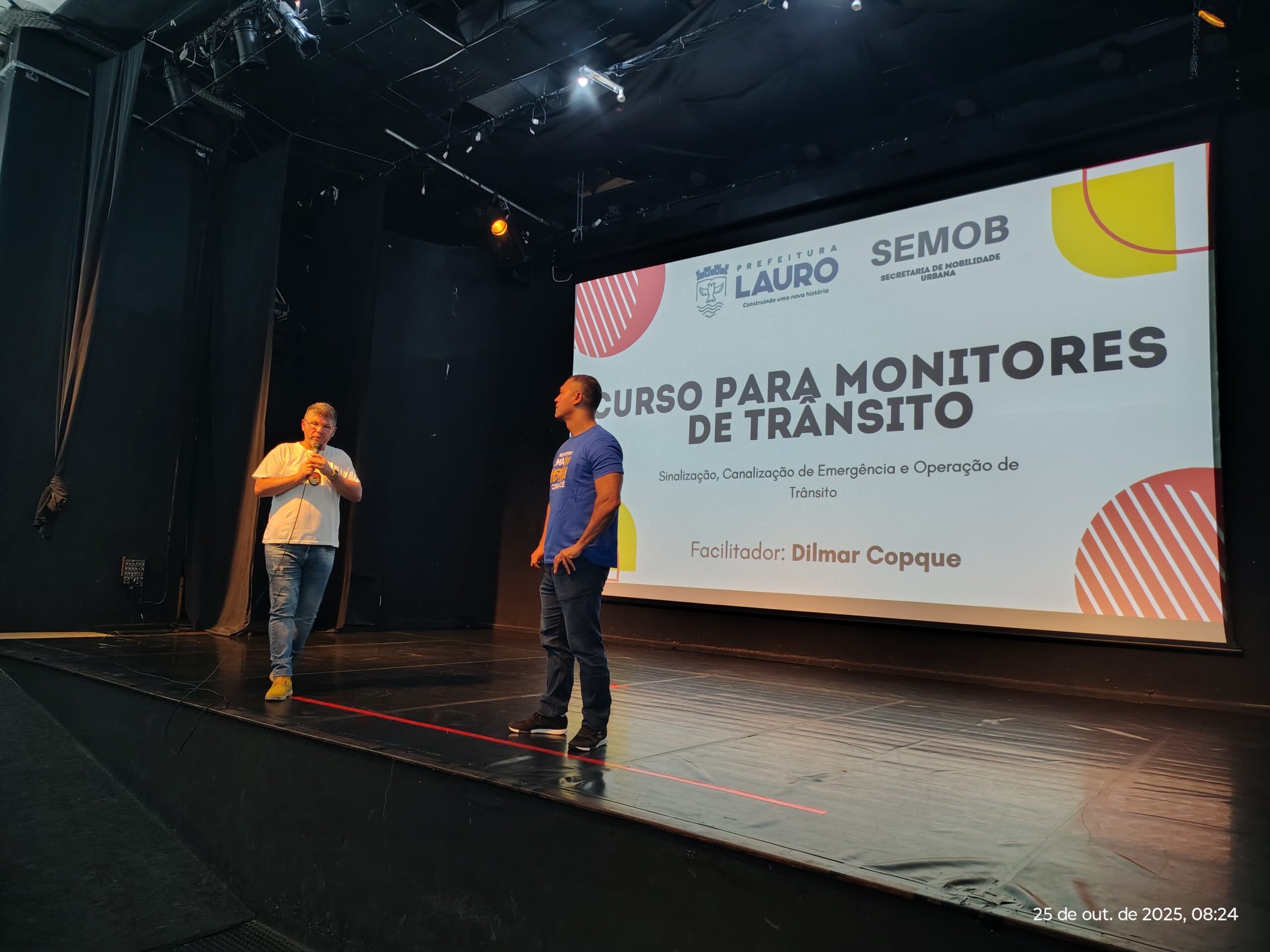 A Prefeitura de Lauro de Freitas, por meio da Secretaria Municipal de Mobilidade Urbana (SEMOB) realiza treinamento de orientadores de trânsito para monitores da Empresa Otran Lauro Soluções Uranas Ltda. O secretário Glauber Moraes participará do curso, que será ministrado pelo Superintendente de Trânsito e Transporte Dilmar Sacramento, no Cineteatro, localizado na Praça João Thiago dos Santos, Centro, sábado (25/10), das 8h às 17h.