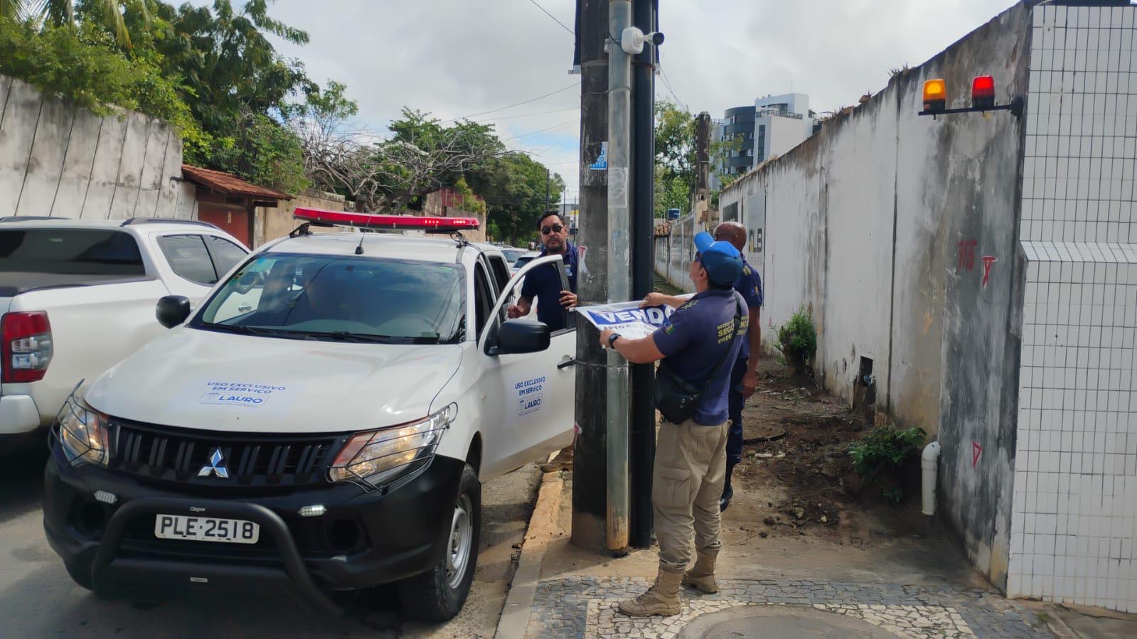 A Prefeitura de Lauro de Freitas, por meio da Secretaria Municipal de Segurança, Defesa Civil e Ordem Pública (SSPLF), deu continuidade, neste domingo (24/8), à operação “Visão Limpa”, que tem como objetivo remover placas e cartazes colocados de forma irregular em áreas públicas do município, principalmente nos postes de iluminação.