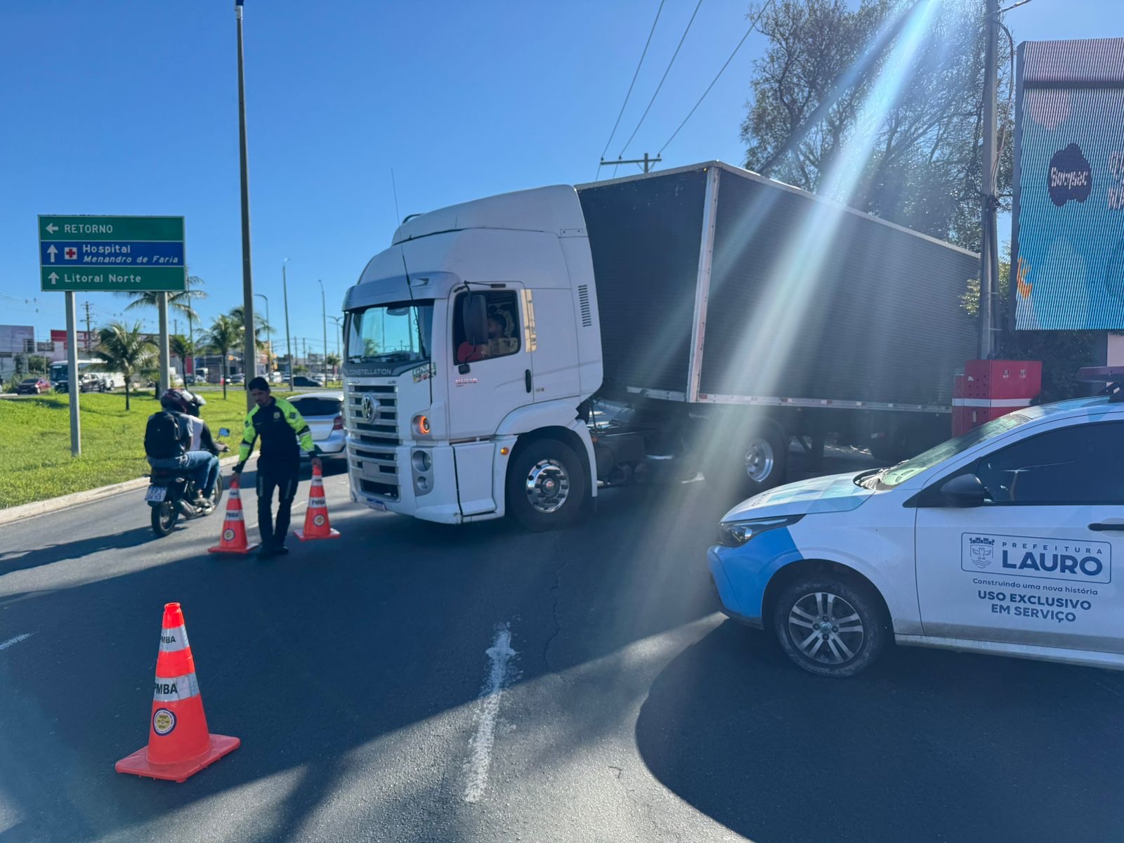 A Prefeitura de Lauro de Freitas, por meio da Secretaria Municipal de Mobilidade Urbana (SEMOB), atende, na manhã desta quinta-feira (19/3), uma ocorrência de veículo quebrado na via, registrada às 7h41. A situação envolve uma carreta que apresentou falha mecânica na Avenida Santos Dumont, nas imediações do Horto Florestal, após o Parque Shopping Bahia, impactando o fluxo de veículos na região.