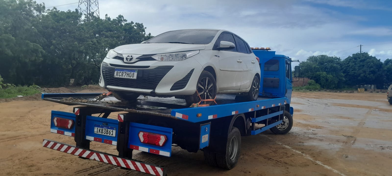 No local, os policiais confirmaram que se tratava de um Toyota Yaris branco, placa RCR-7H08, com registro ativo de roubo. Diante da constatação, a guarnição acionou a Secretaria Municipal de Mobilidade (SEMOB), que prontamente enviou um guincho para a remoção do veículo.