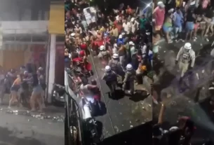 Um vídeo que circula nas redes sociais mostra o homem correndo enquanto é perseguido por três agentes com rosto mascarado. Eles agridem o vendedor ambulante com cassetetes enquanto pessoas que estão no local pedem por calma.